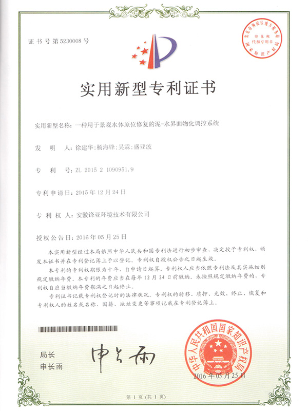 一種(zhǒng)用於景觀水體原位修複的泥-水界麵(miàn)物化調控係統