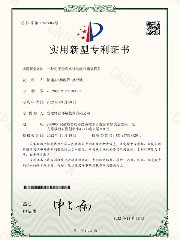 一種(zhǒng)用於景(jǐng)觀(guān)水(shuǐ)體的曝氣增氧設備