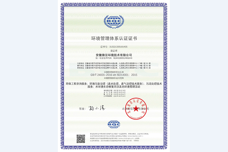 環境管理體係(xì)證書
