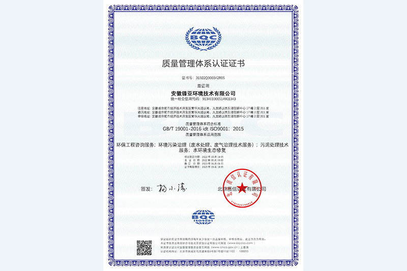 質(zhì)量管(guǎn)理體係證書