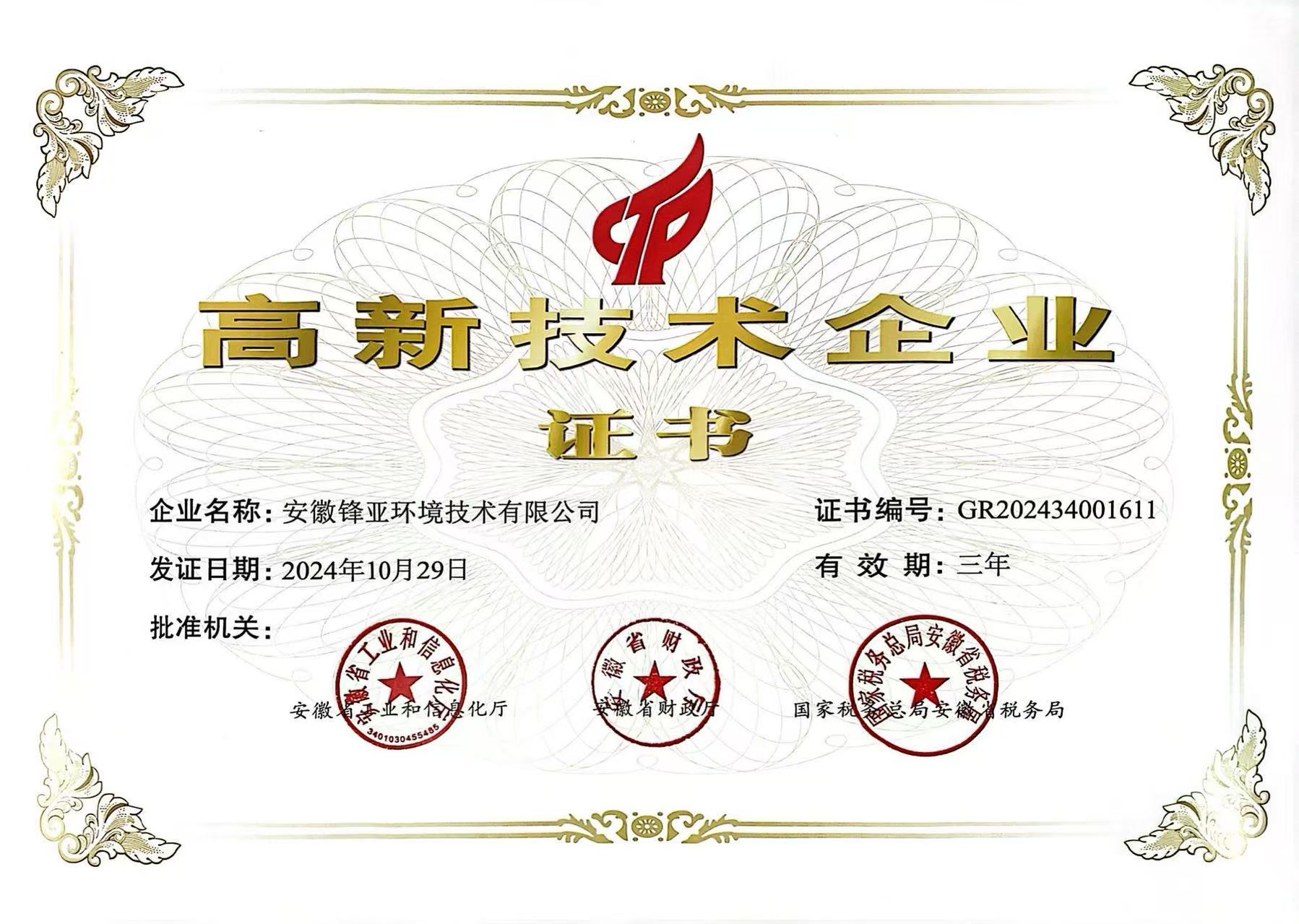 高新技術企業(yè)證書